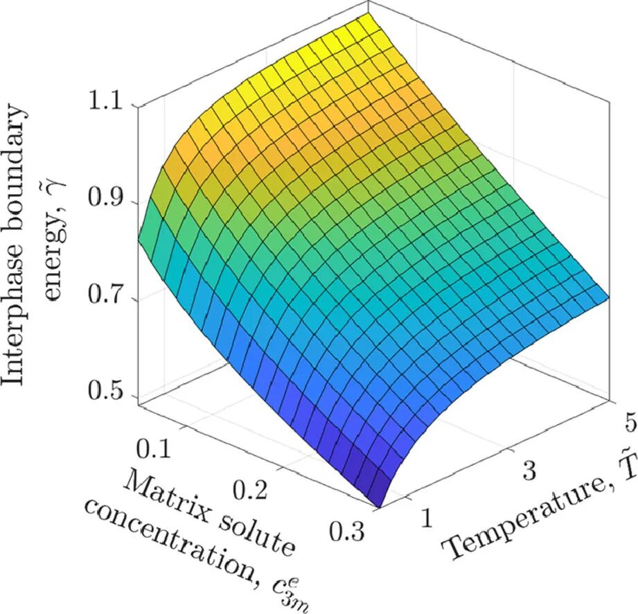 许多析出硬化合金的实验和第一性原理研究表明,合金元素偏聚到基体-析出界面(IB)会降低界面能量。这种偏聚机制可以稳定材料组织,抑制析出粗化过程,使得结构材料能在更高的温度服役。在本研究中,我们建立了一个描述三元合金中基体-析出界面溶质偏析的相场模型框架。通过建立基体-析出界面能量和溶质浓度的依赖关系,能够有效地描述界面热力学。界面相平衡通过平行切面确定,类似于经典理论中对于自由表面和晶界偏析的处理。我们推导出了一维体系中的稳态解析解,阐明了基体-析出界面性质随体成分、温度和模型参数的变化关系。我们还推导得到了界面能量、溶质浓度等经典热力学量的解析关系,其结果与吉布斯吸附方程一致,因此,模型预测结果可以与实验和原子模拟进行比较。我们利用了Mg/Mg2Sn体系中Zn的偏聚说明了模型的典型应用。我们对界面偏聚导致的析出相粗化进行了模拟,结果表明三元合金的抗粒子粗化能力优于二元合金。