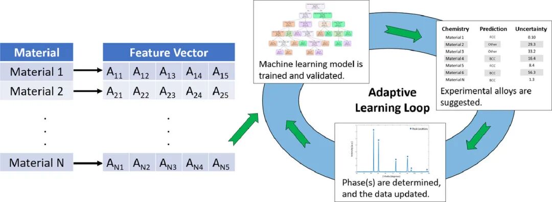 过去十年中,大量研究工作致力于单相高熵系统的计算搜寻和实验验证。但对于高熵系统的预测目前仍是一个极大的挑战。以往的研究主要利用密度泛函理论获取相关参数,并将其与已有数据进行拟合,但由于成分范围广,计算成本大,导致这一方法难以实际应用。而使用机器学习方法加速材料设计研发,并减少计算和实验成本则是近来快速发展的一个领域。机器学习相比传统模拟具有很多内在优势,例如它能够灵活应用最新的实验数据,并且能够快速构建输入数据和目标输出之间的关系。在研究中,我们提出了一种新的高通量机器学习方法,我们把它称为“ML-HEA”。利用随机森林模型耦合热力学和化学特征,预测固溶体形成能力。该模型既可以单独作为一种基本工具,也可以集成到现有的合金设计工作框架中。我们通过与二、三、四、五元系统的实验数据进行比较,验证了该方法的有效性。我们同样将其与其他模拟方法(包括CALPHAD和LTVC模型)进行了比较,以评估机器学习在标记和未标记数据上集的性能。通过输出单个预测树,我们探讨了该模型在预测每个成分对应相时的不确定性。更重要的是,我们开发的这一模型可以不受约束地随时进行更新,以反映最新的实验成果。