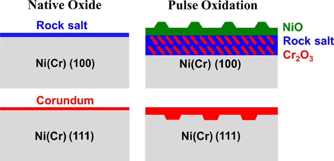 在本文中,我们阐明了晶体中的非平衡溶质捕获具有各向异性。我们在相同条件下,将不同取向的Ni-30Cr (wt.%)晶粒在600℃ 氧化了60 s。(100)取向晶粒通过溶质捕获,形成了立方-立方外延取向的岩盐氧化物。而对于(111)晶粒则通过溶质捕获形成了(0001)//(111)的刚玉氧化物。通过形貌可以推断,氧化物生长是由动力学因素而非热力学因素控制的,从岩盐氧化物向外生长,而刚玉氧化物向内生长。由于在金属/氧化物边界在移动(如(111)晶粒对应实验)和静止(如(100)晶粒对应实验)状态下对于溶质的捕获是不同的,因此晶体学上的各向异性对材料的氧化或腐蚀有不可忽略的影响。