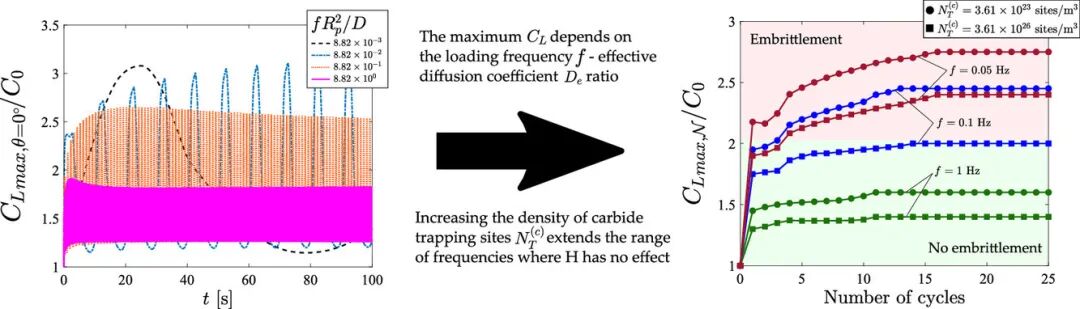 我们研究了循环载荷下组织中的氢陷阱对氢扩散和氢脆的影响。我们建立了一个能涵盖多种氢陷阱的有限元模型,并用它解释了裂纹尖端形貌和氢浓度随载荷频率、结合能和陷阱密度的变化关系。结果表明,晶格中的最大氢浓度对载荷频率和有效扩散系数的比值十分敏感。在预充氢的样品(封闭系统)和暴露在氢源下的样品(开放系统)中都观测到了这一结果。我们设计了实验确定了惰性环境下的氢致脆化临界浓度。随后,我们定量研究和讨论了高陷阱密度材料对循环载荷过程中对氢脆的缓和作用。结果表明,与静态条件下不同,增加陷阱密度是一种可行且可同时应用于封闭和开放系统的抗氢致疲劳合金设计策略。