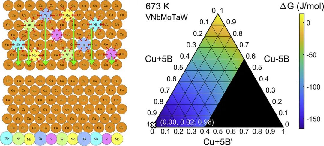 V-Nb-Mo-Ta-W高熵合金中自发形成1.5nm阻隔层的热力过程中焓和混合熵的作用