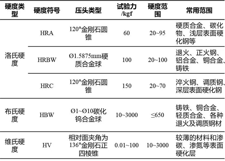 金属材料最常用到为洛氏硬度、布氏硬度和维氏硬度。